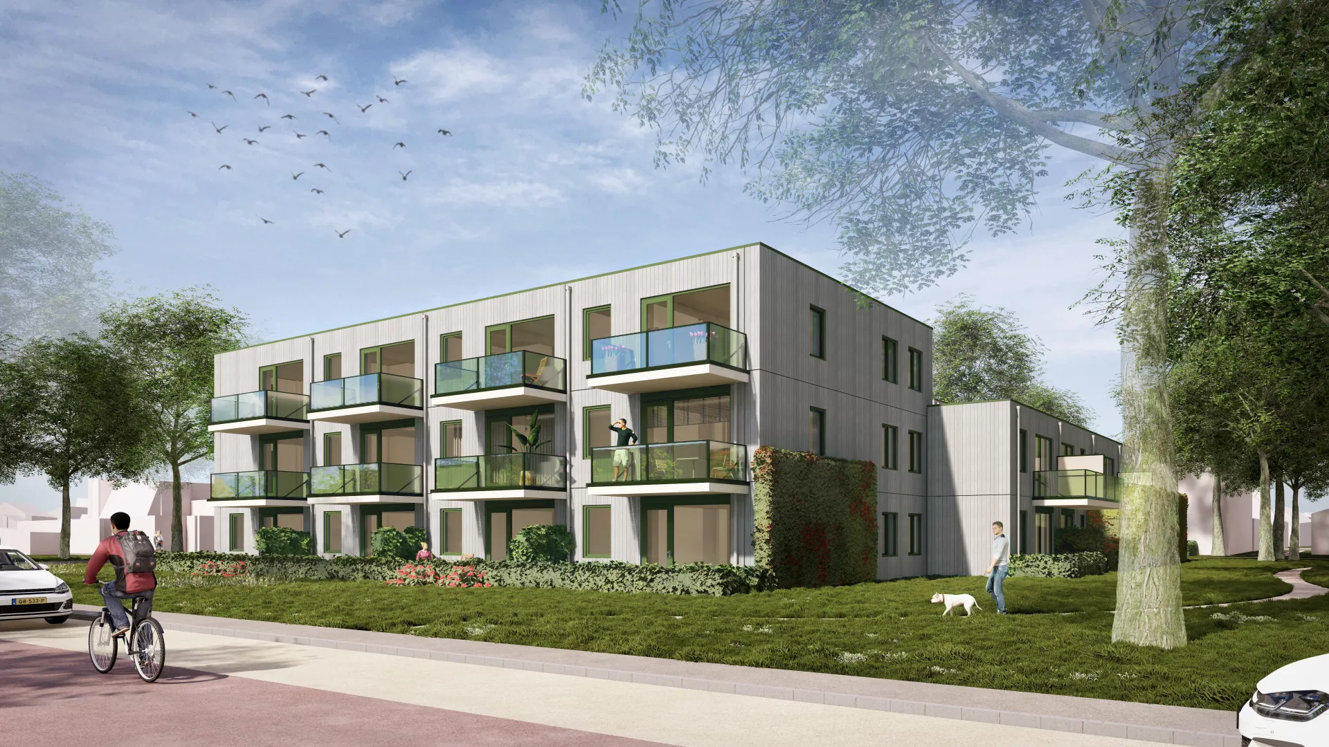 De appartementen zijn verdeeld over één gebouw en worden volledig gebouwd in houtskeletbouw. De drie woningtypen variëren in woonoppervlakte van circa 57 tot 75 m². De appartementen worden rondom een gezamenlijke binnentuin gesitueerd, waardoor een groene, open en uitnodigende leefomgeving ontstaat waar buren elkaar kunnen ontmoeten.